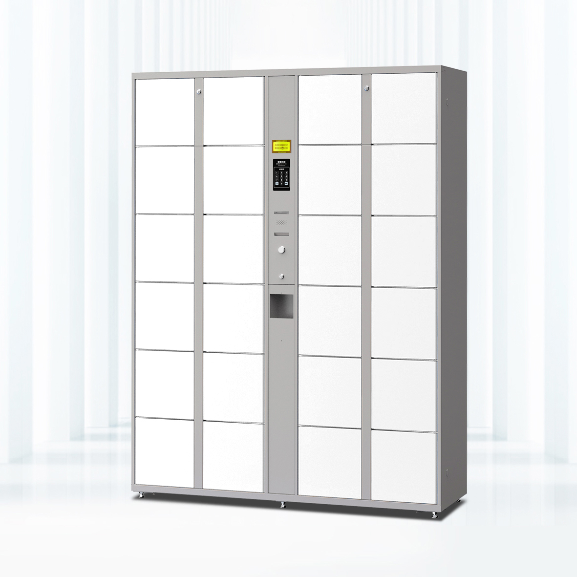 超市、商場、藥店的共同特點是顧客流量較大,流動性大,難于管理,所以適合隨機一次性存包方案,即使用機設(shè)條碼式智能寄存柜。